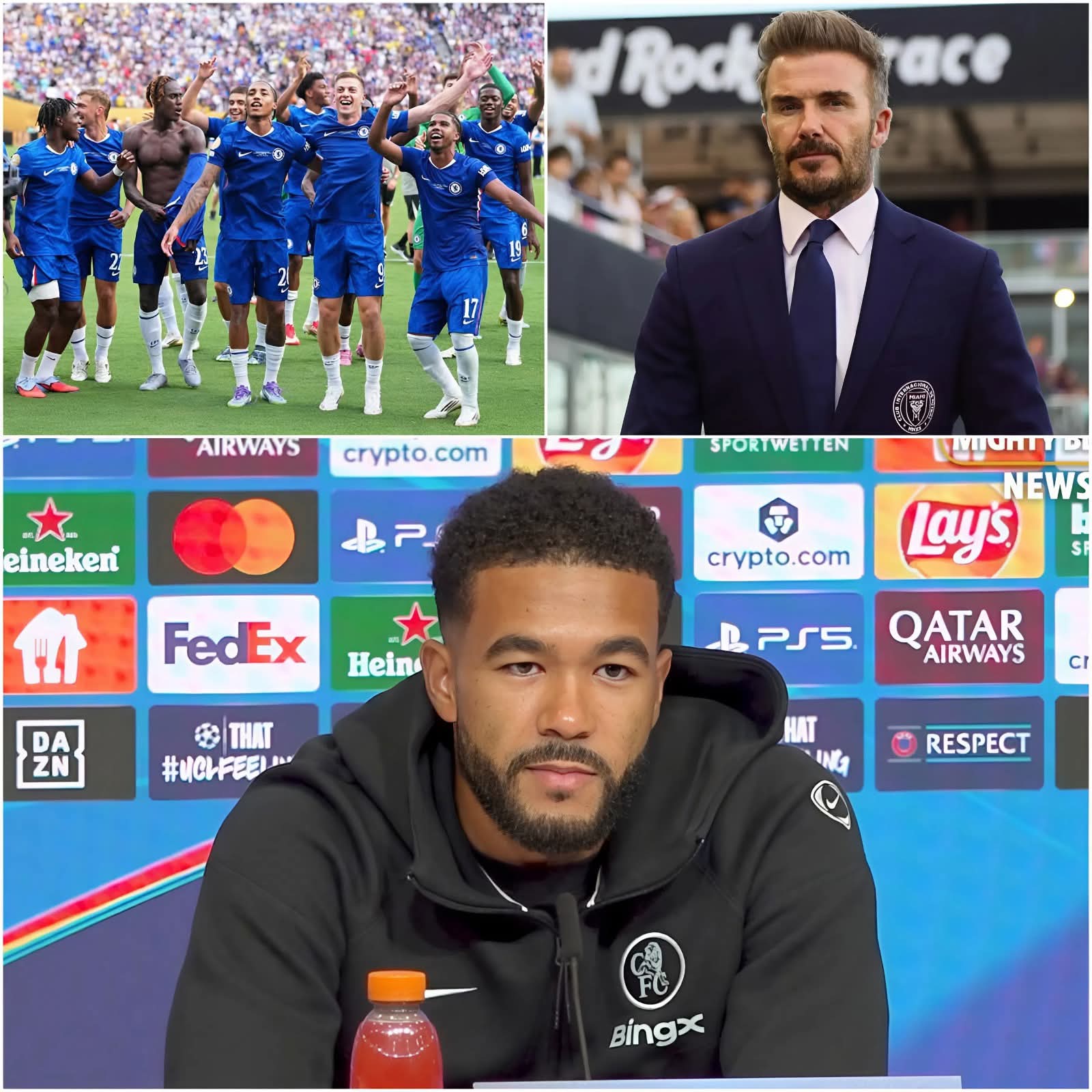 Reece James forcefully grabbed the microphone and shouted: “GET OUT OF HERE NOW! DON’T THINK YOU CAN TOUCH MY TEAMMATES. STOP SMEARING CHELSEA’S VICTORY AND HONOR!” The tense confrontation erupted immediately after David Beckham made a remark described as “unprecedentedly insulting,” directly targeting Chelsea’s players and coaching staff. Thirty minutes later, James delivered a statement of just 13 words, leaving the entire press room stunned, while David Beckham turned pale and stammered out half-hearted apologies. But James didn’t stop there: with tear-filled eyes, he vowed to PROTECT CHELSEA UNTIL HIS LAST BREATH, reaffirming his absolute loyalty to the club.