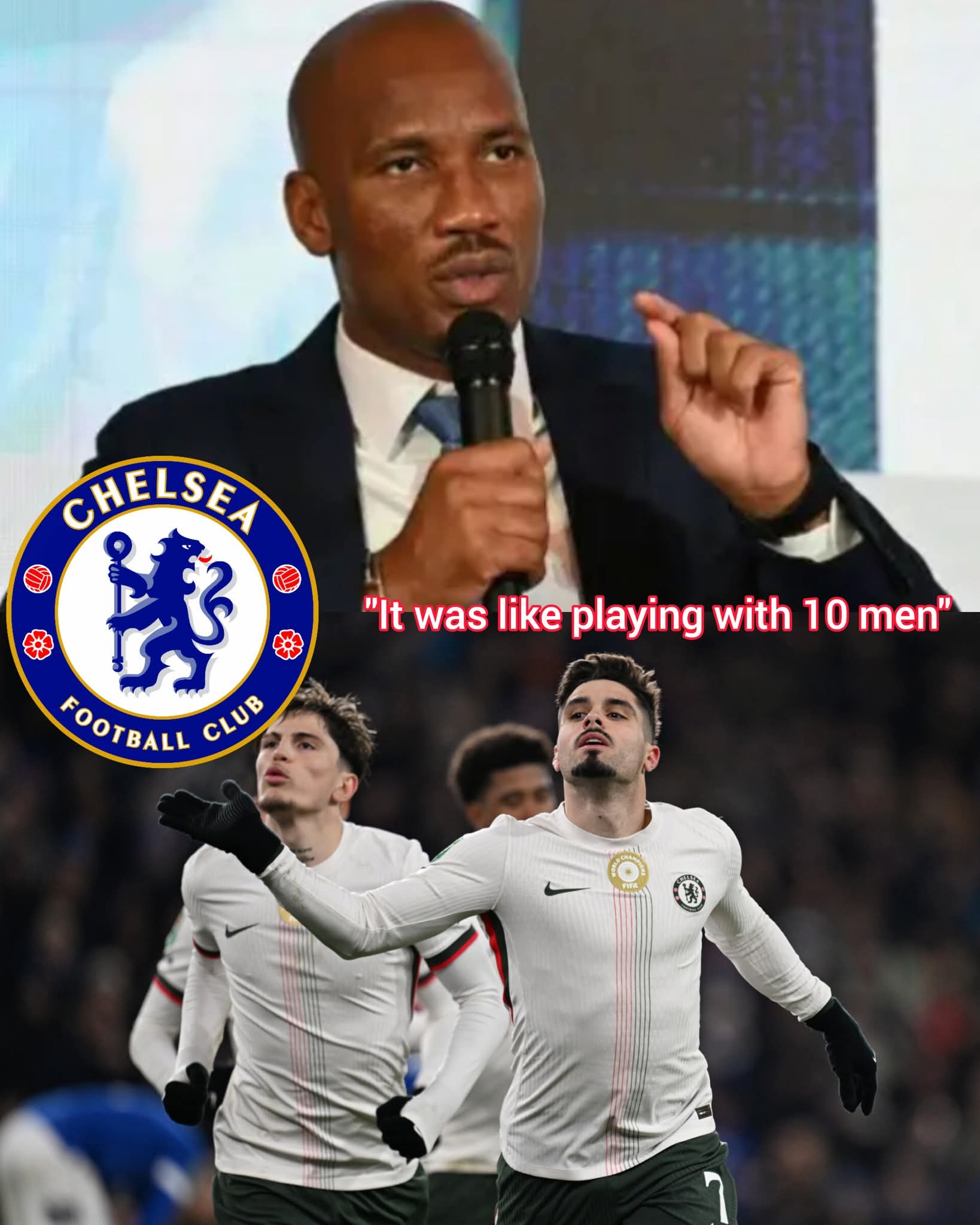 The quote “It was like playing with 10 men” is a heavy accusation often leveled at flair players who vanish when the team is under pressure. While there is no official record of Drogba using those exact words in a post-match interview on February 7, the sentiment reflects his long-standing “tough love” approach toward the current Chelsea project.